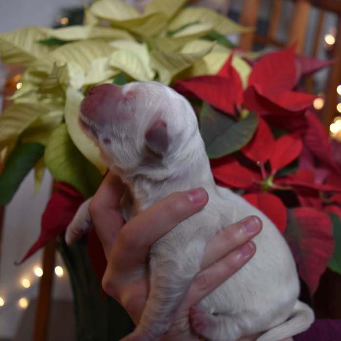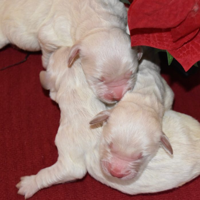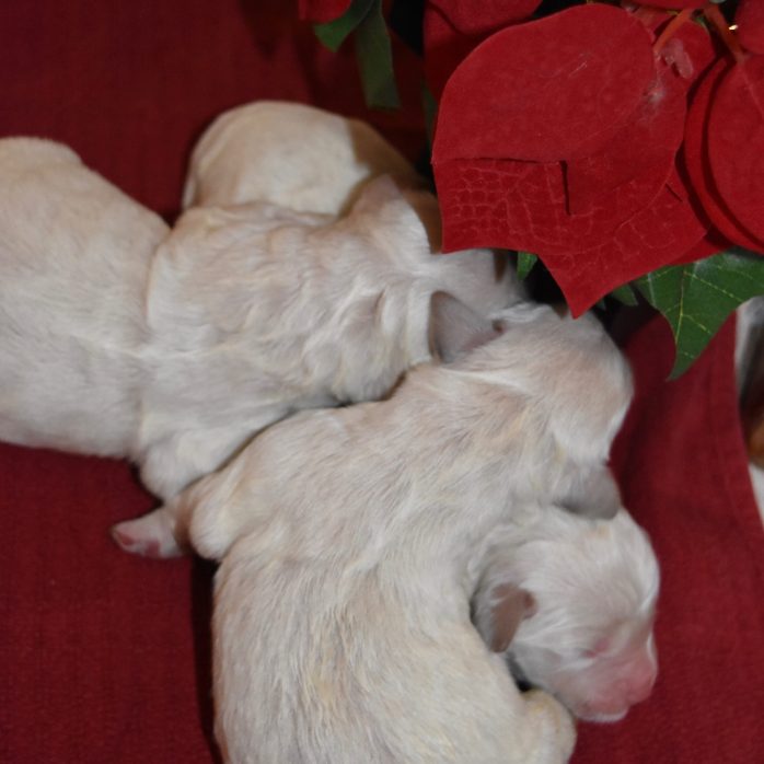 Good morning friends! Creme Brûlée brought 9 of cutest puppies into the world last night and this morning, December 9, 2020. All are full of energy and love of life. As we love on them and take care of them we will post more info. Look like 5 boys and 4 girls. (Subject to clarification after we get some sleep…) “Brûlée” is the best mamma ever…loves those cuties