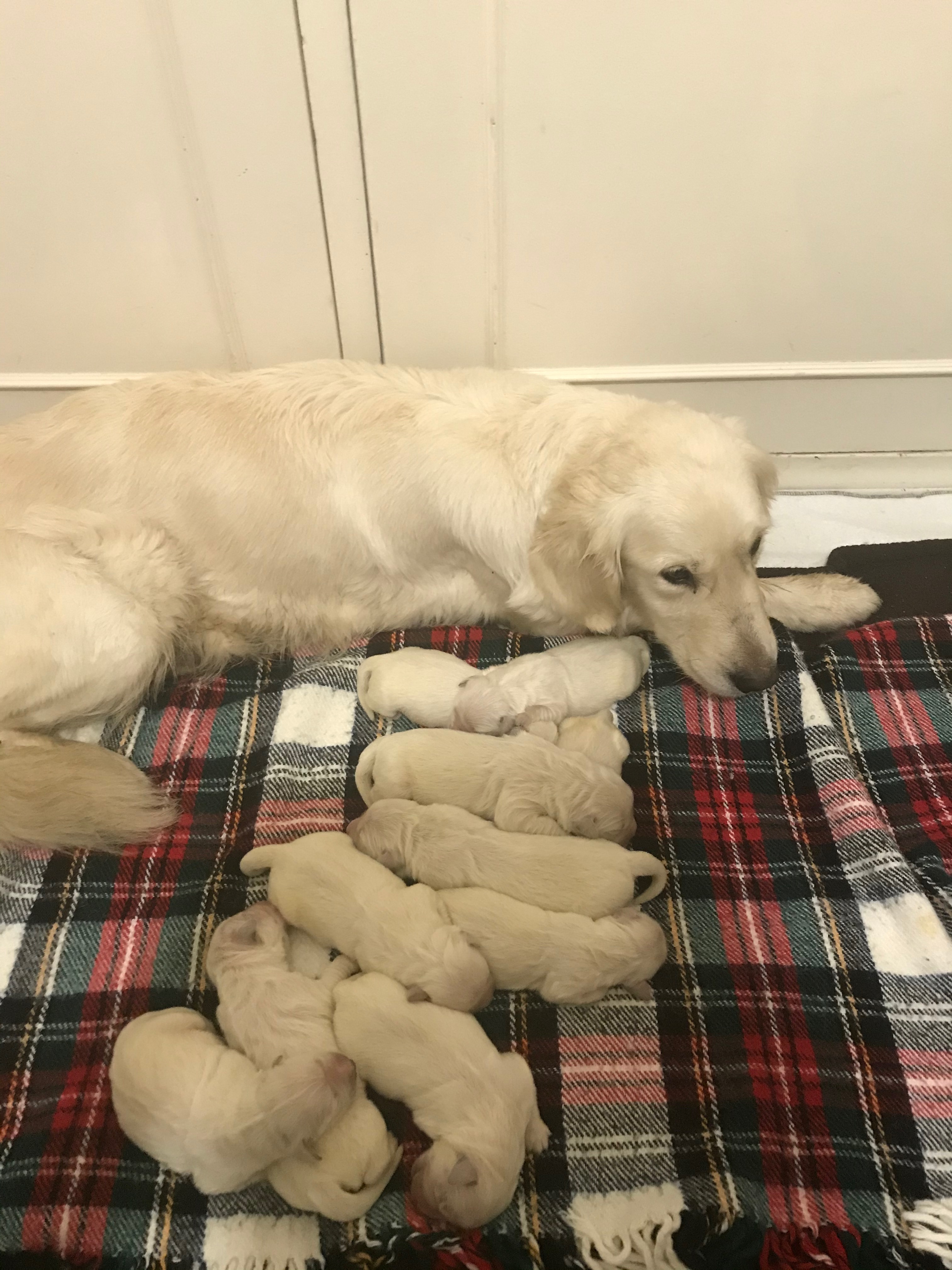 10 gorgeous babies born Thursday December 17. We are very excited about these beautiful puppies. Lavina is a sweetheart, treats her babies with such gentle consideration.