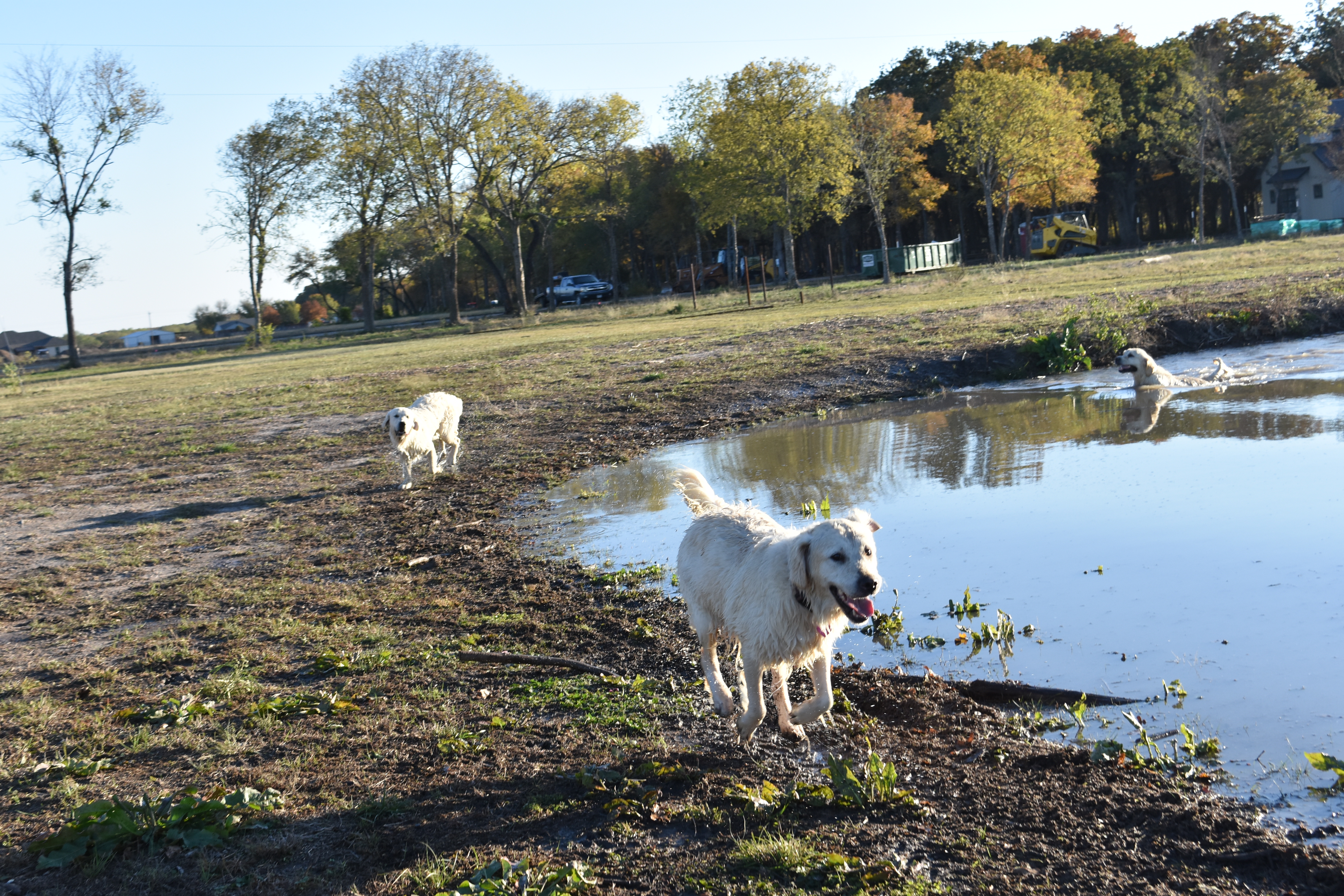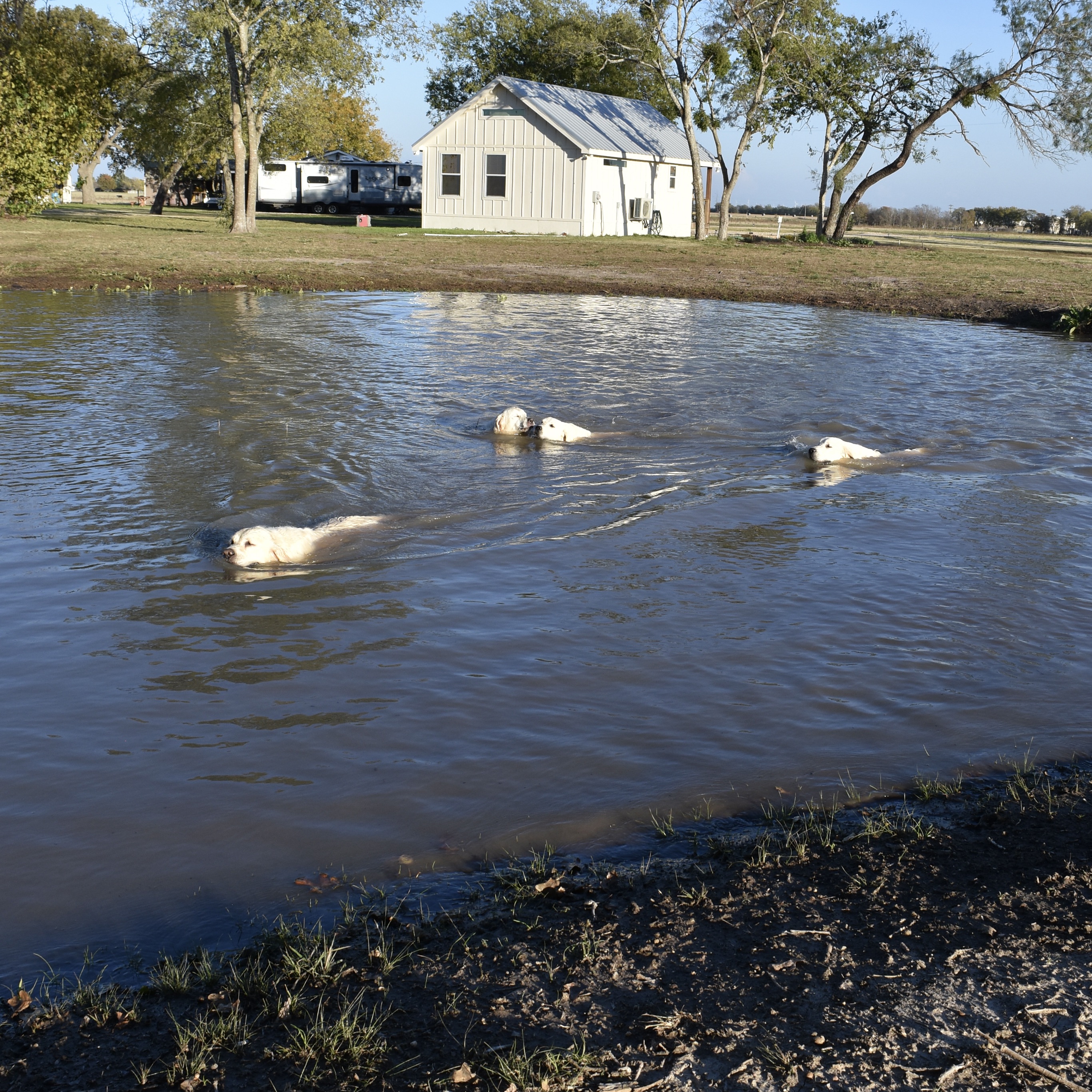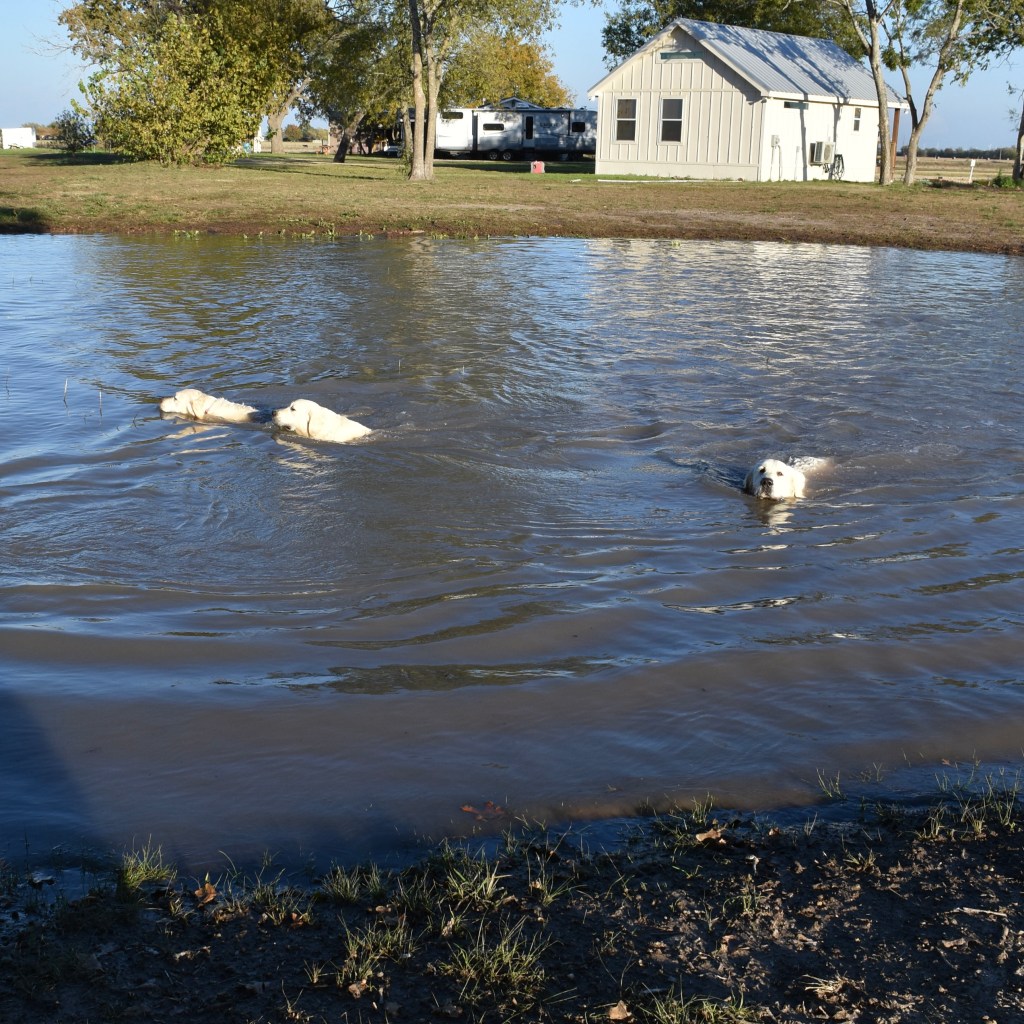We have had more adventure than dogs should be allowed to have. We have traveled across the United States by car. Starting in Moscow, Idaho we traveled to Waco Texas, then to New York, New York to appear on the Jimmy Fallon show. Then traveled back to Waco after stopping in Sandestin, Florida to leave off one of our buddies with a family there. This past Thanksgiving, we received over 3″ of rain that filled up the pond at our new home. We have had such a blast swimming in all this water. Six of us are looking for our homes. We have been in training, working with our family to learn to leash walk and perform simple obedience.