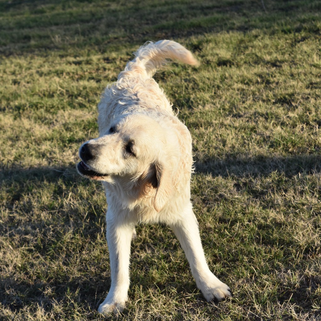 This is Hunter. Hunter is an English Cream Golden Retriever stud. He is 11 months old right now and is looking for his forever home. Along with his brothers, he appeared on the @JImmyFallon Tonight Show back in May of 2022. Look it up on YouTube. It is a riot. https://www.youtube.com/watch?v=vBlmpW58NWo