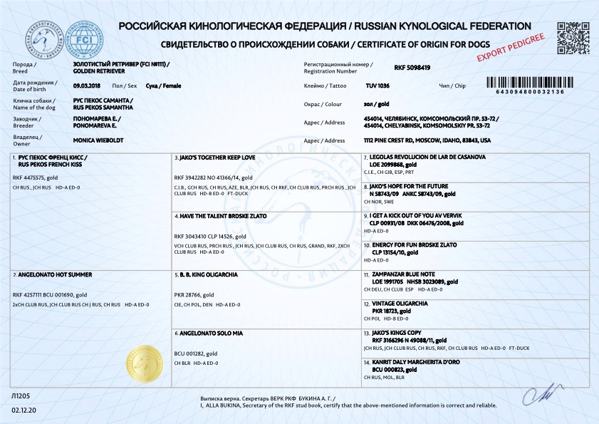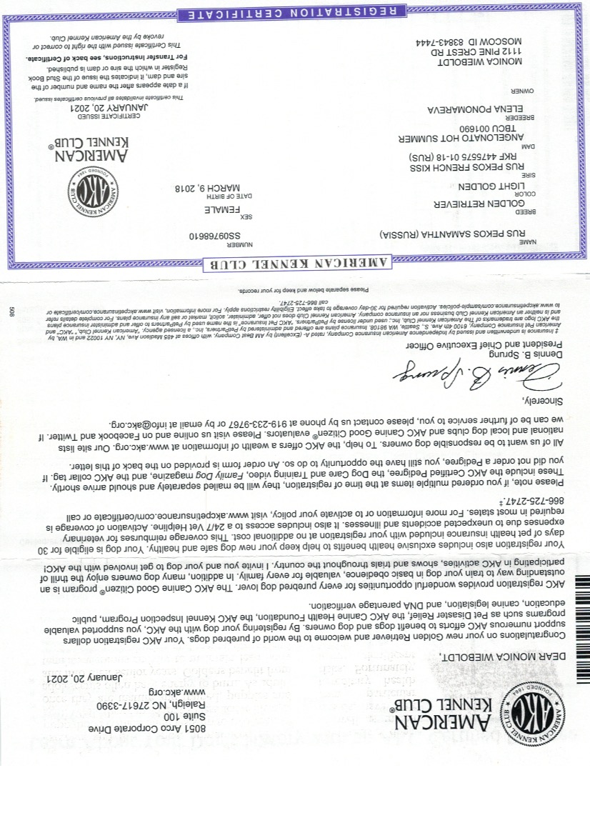 AKC Certificate