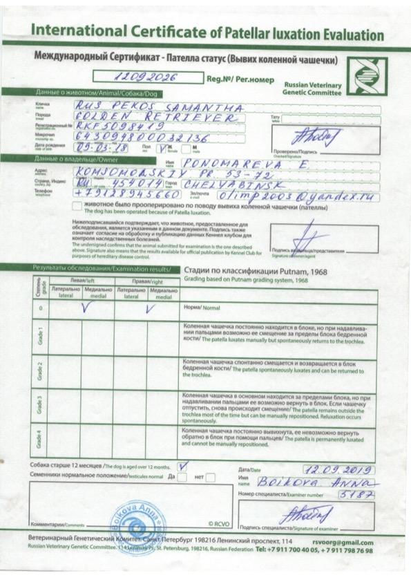Patellar Certificate